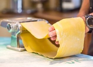 • Spinach and Ricotta Agnolotti with Crispy Pancetta