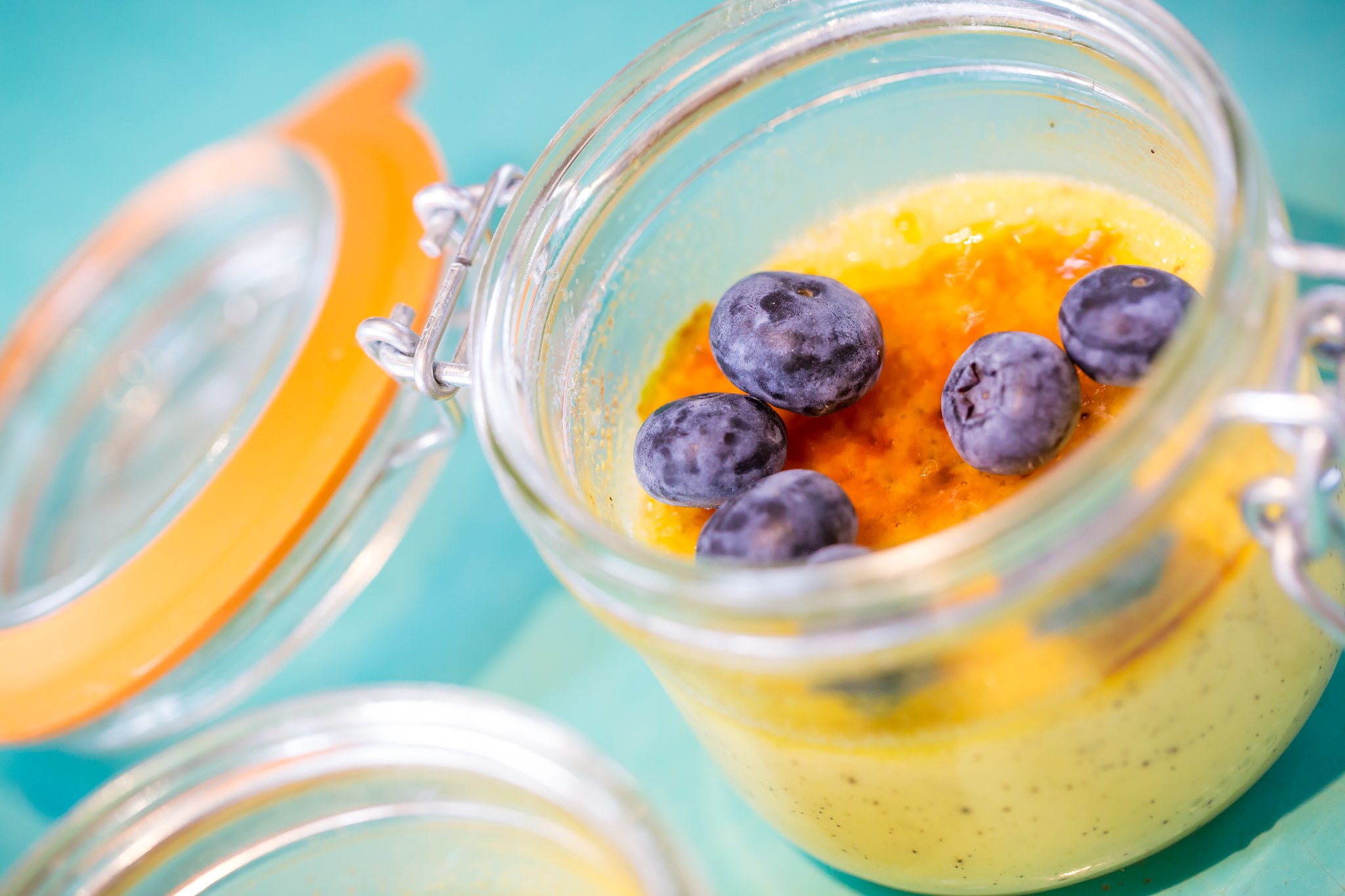 • Vanilla Panna Cotta with Caramelized White Chocolate Crumble