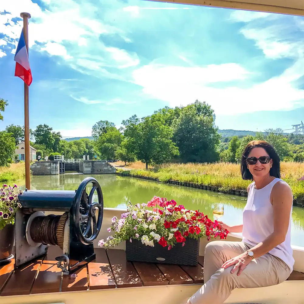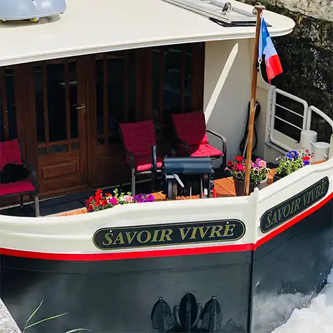 While cruising, passengers relax with a glass of locally produced wine in the comfortable salon, socialize with friends on the petite foredeck, or explore miles of manicured towpath on bike or by foot. Four smartly appointed cozy cabins offer clever storage and modern ensuite bathrooms. The vessel’s attentive crew of three is personable and professional, creating a convivial atmosphere both onboard and onshore. Consistently noted as a guest favorite, the Good Life indeed awaits on the Savoir Vivre in Northern Burgundy.